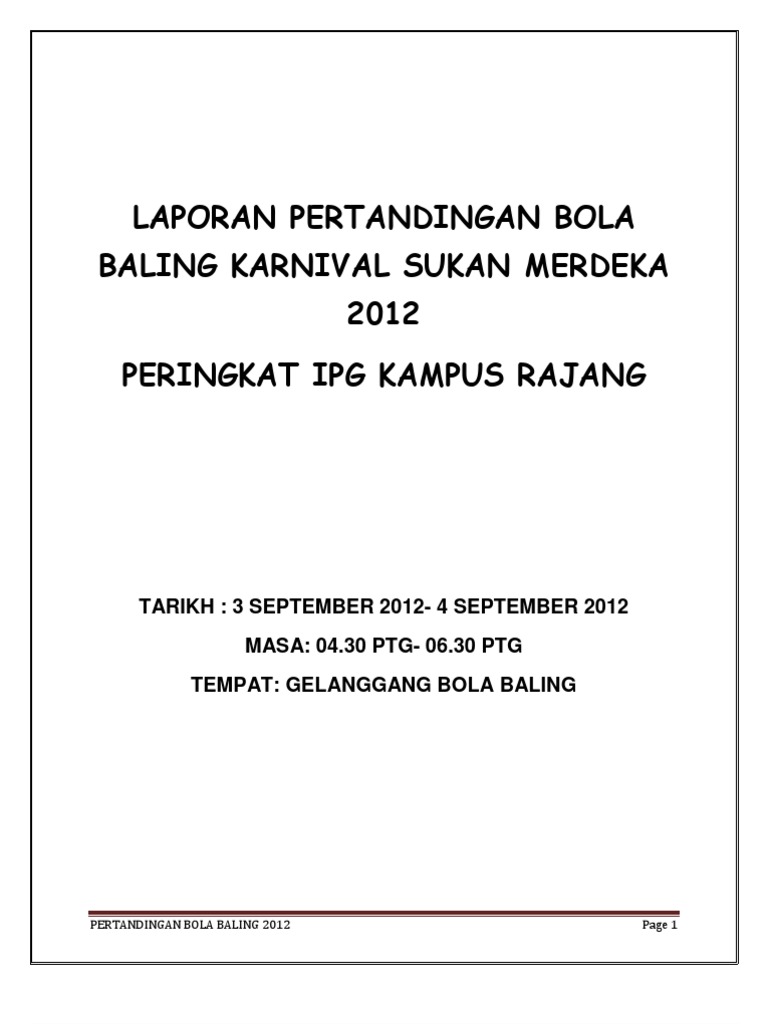Laporan Pertandingan Bola Baling Karnival Sukan Merdeka 2012 Pdf