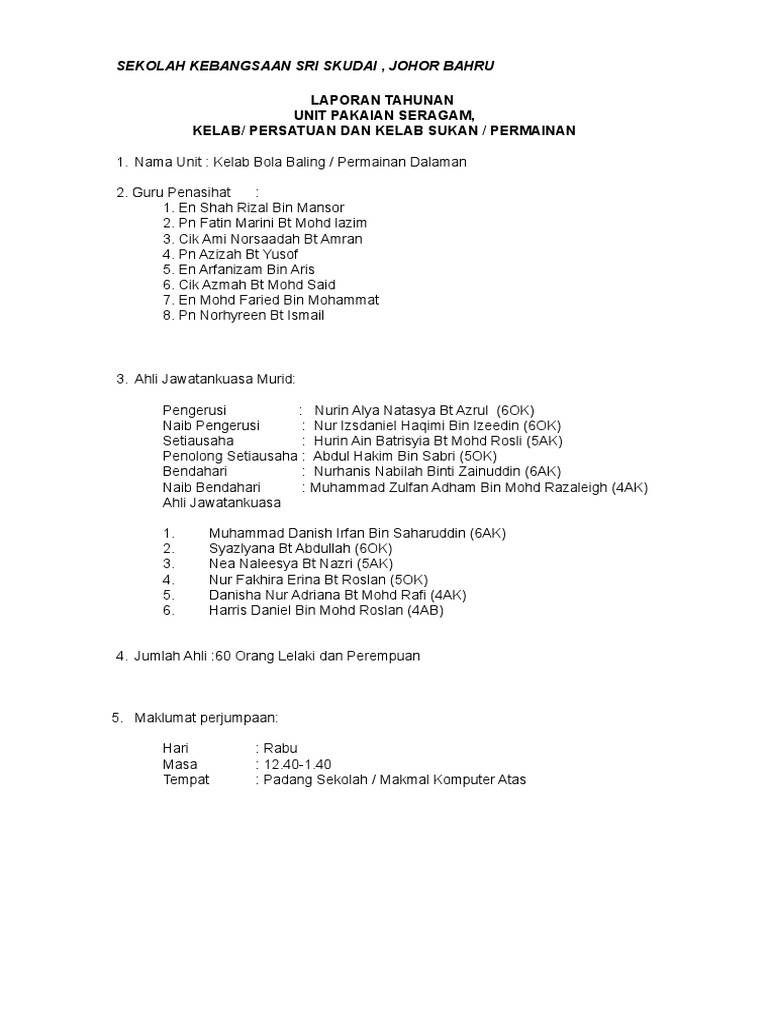 Pencapaian dalam Penasihat Pasukan Bola Pasukan Bola Pasukan Bola permainan bola Baling. Baca versi flipbook dari LAPORAN KESELURUHAN KOKURIKULUM. Bola Baling menyediakan Laporan Kewangan untuk diaudit dan dibentangkan dalam 17 Mesyuarat Agung.